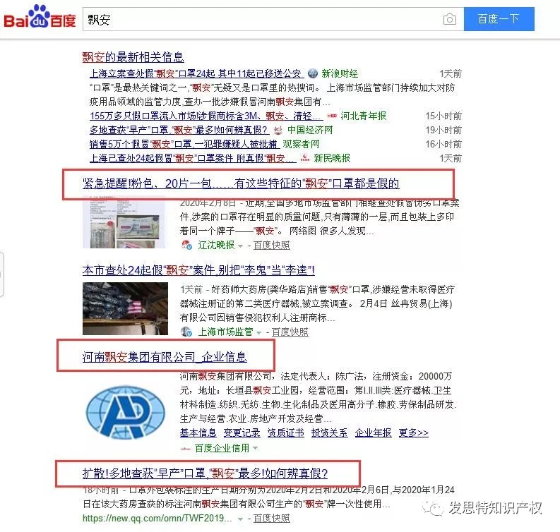 所以,越是大企業(yè)、大品牌,越應該加強企業(yè)的品牌管理、品牌保護,瞧,“飄安”只是一個(gè)例子,一次突發(fā)事件(疫情爆發(fā),口罩成為必需品)就把他從河南推向了全國,這還只是被制假售假,那些商標被搶注而損失慘重的品牌更是有苦難言!