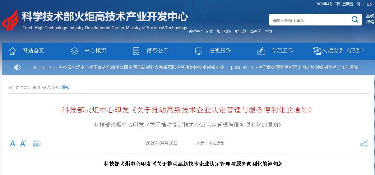 昨日,科技部火炬中心網(wǎng)站發(fā)布最新通知,《關(guān)于推動(dòng)高新技術(shù)企業(yè)認定管理與服務(wù)便利化的通知》印發(fā),全文如下:
