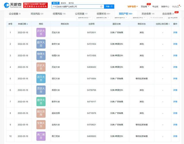 此外,許多商家還將高考與自己的品牌結合,利用熱點(diǎn)宣傳自家產(chǎn)品。必勝客曾申請“高考必勝”商標,不過(guò)這一商標已被駁回;元氣森林曾申請注冊“滿(mǎn)分高粽”商標,目前其狀態(tài)也變更為駁回復審;2022年高考前不久,王老吉申請“萬(wàn)試大吉”“超吉發(fā)揮”等商標,目前商標狀態(tài)多為等待實(shí)質(zhì)審查。