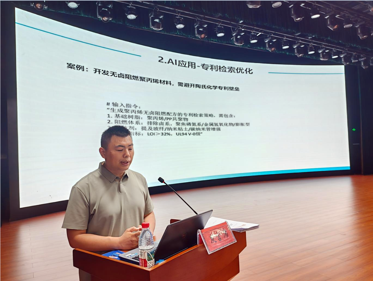 培訓會(huì )特邀山東省國家知識產(chǎn)權保護中心人才專(zhuān)家庫專(zhuān)家、山東發(fā)思特知識產(chǎn)權信息服務(wù)有限公司副總經(jīng)理曹志磊進(jìn)行授課。曹志磊重點(diǎn)推介了臨淄區高端精細化工產(chǎn)業(yè)專(zhuān)利導航項目的最新成果,并圍繞全球技術(shù)路線(xiàn)、競爭格局、風(fēng)險預警(FTO)和研發(fā)空白點(diǎn)作系統解讀,并結合AI工具演示專(zhuān)利布局“一張圖”、侵權規避“一條路”、價(jià)值提升“一套賬”。