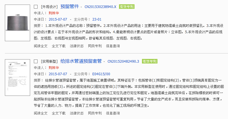 產(chǎn)品替代了傳統的PVC管,切割、鉆眼、填沙、膠帶封口、固定不牢固、后續拆模板清理衛生等繁瑣工序。人工費的不斷攀升,用過(guò)去的預留方法即費工又費錢(qián),并且用料上也很浪費,如一條管子長(cháng)度為4米,在不浪費的情況下出38個(gè)套管,材料和人工加在一起太不合算。而這款有專(zhuān)利授權的套件,在低于管子的成本價(jià)格之下,同時(shí)省去了傳統的管子切割、鉆眼、填沙、膠帶封口、不牢固、后續清理衛生等工序。成型好、操作簡(jiǎn)單,大大節省了人工成本的同時(shí),真正實(shí)現了省時(shí)省力省錢(qián)。就是因為耿先生的創(chuàng )新意識和專(zhuān)利權保護意識,為他挖了深深的一桶金。如今,他想通過(guò)授權許可的方式,把這個(gè)掘金神器與外省同行們分享……