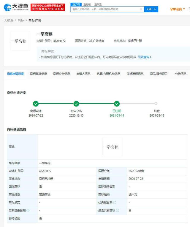 除了考生和家長(cháng)對諧音??駸嶙放跬?,許多商家也申請商標跟風(fēng)玩梗。上述“旗開(kāi)得勝”“超常發(fā)揮”“一舉高粽”“一舉奪葵”“金榜蹄名”“紫腚能行”均已被搶注商標,其中部分商標已完成注冊。